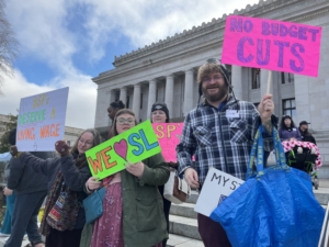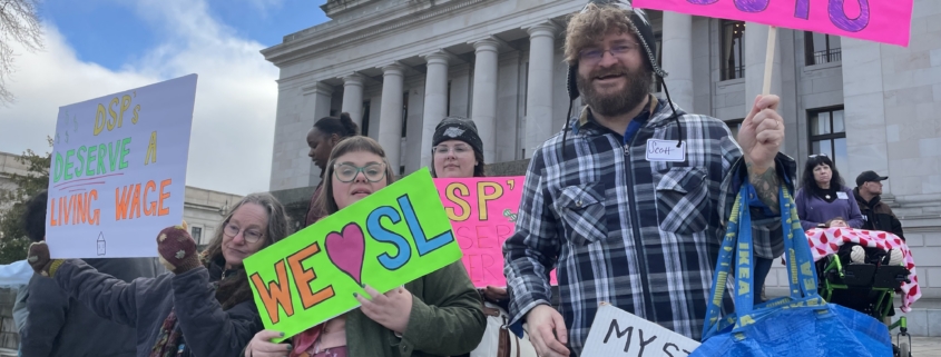 On a beautiful but cold Wednesday afternoon, hundreds of individuals with disabilities, families, providers, and advocates from across Washington State gathered on the Capitol steps to raise their voices in unity. Their message was clear and urgent: protect the right to community living and preserve the essential services people with disabilities need to live full, independent lives.
