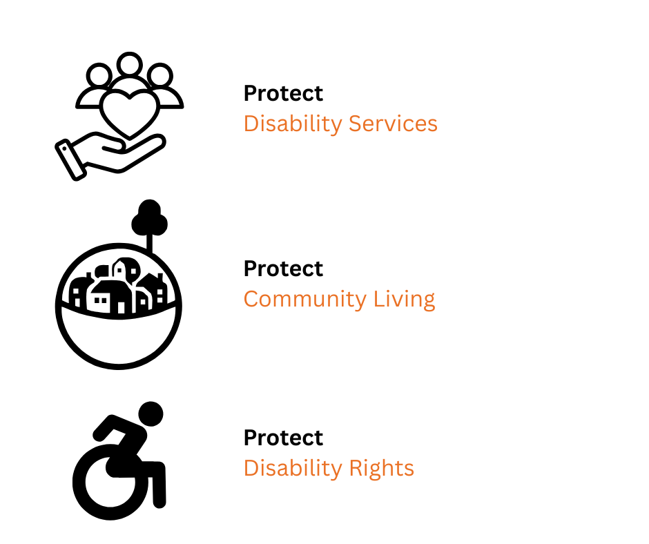“Do NOT make changes to long-term care eligibility. Protect community services and the right to independent living for people with disabilities.”
